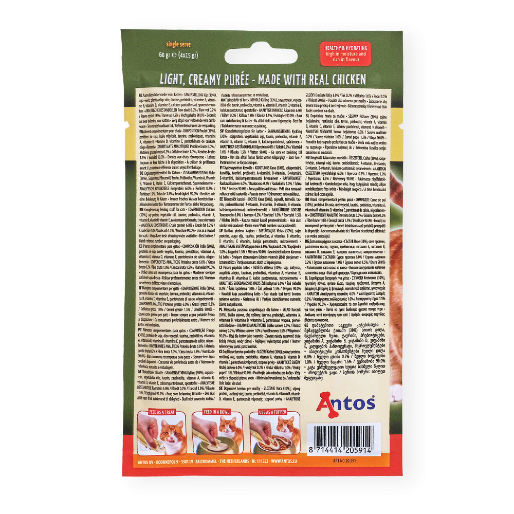 I nostri Croccantini per gatti al purea di pollo sono realizzati con gustosi ingredienti di alta qualità. Ogni delizioso involtino contiene il 90% di umidità, il che lo rende un alimento idratante, e salutare per il tuo adorato felino. Evitiamo cereali e additivi, e aggiungiamo elementi positivi come, per esempio, la taurina e vitamine varie per contribuire a migliorare, in generale, il benessere del tuo gatto.