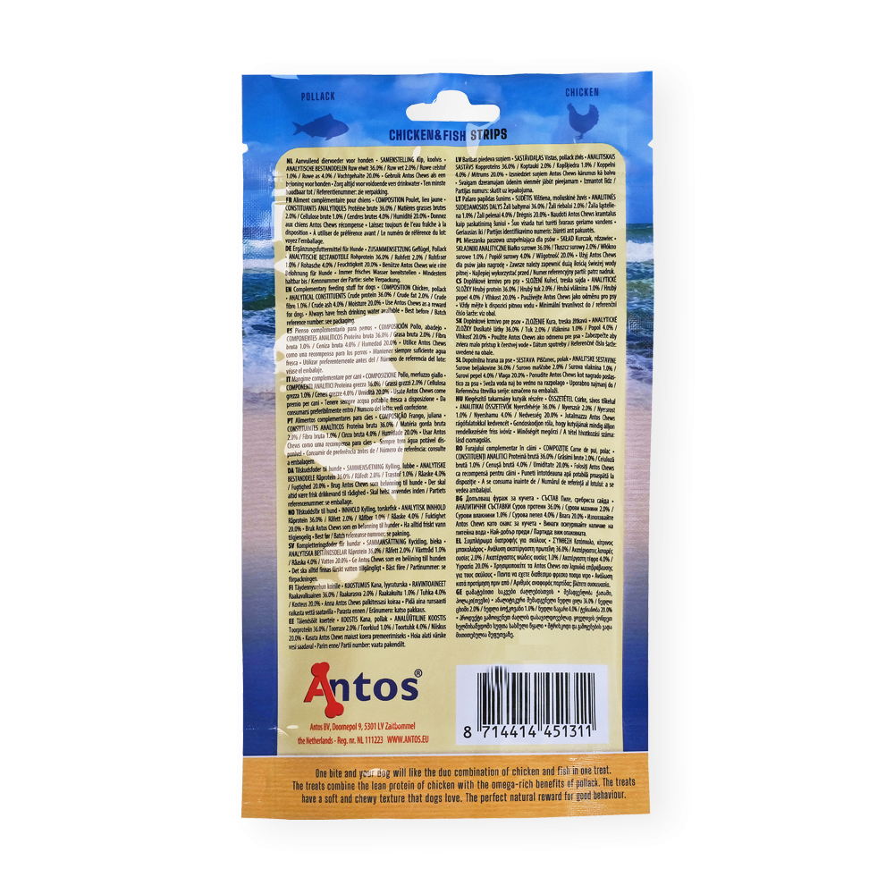 Regala al tuo cane un sorriso brillante e nel modo più gustoso possibile con le nostre Chicken&Fish Strips. Realizzati con soli due ingredienti - pollo e merluzzo giallo -, questi bocconcini fanno benissimo alla salute del tuo amato amico a quattro zampe.